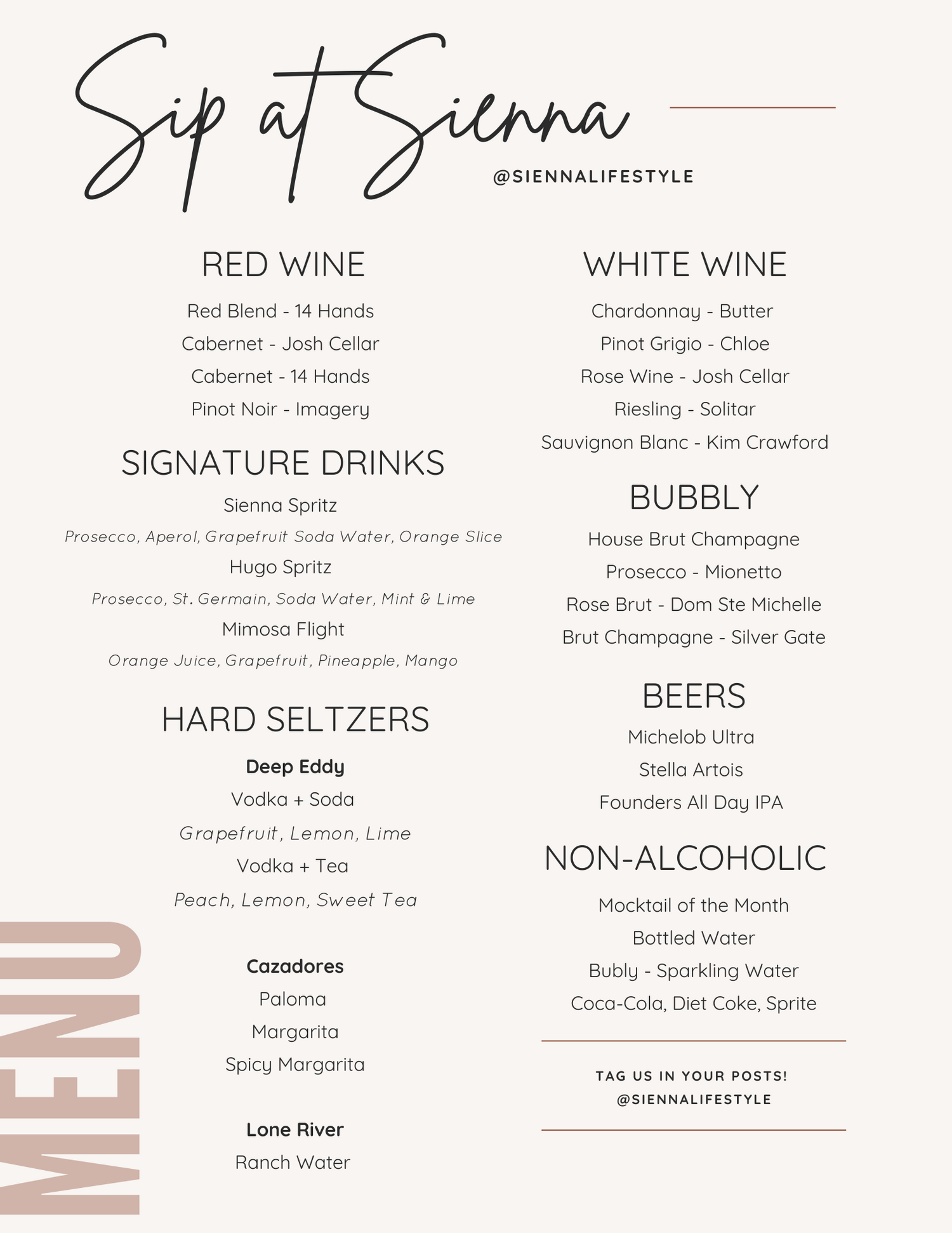 Whether you’re looking for a casual night out, a spot to celebrate, or a cozy place to unwind, Sienna Lifestyle is the place to be. Come for the drinks, stay for the atmosphere!